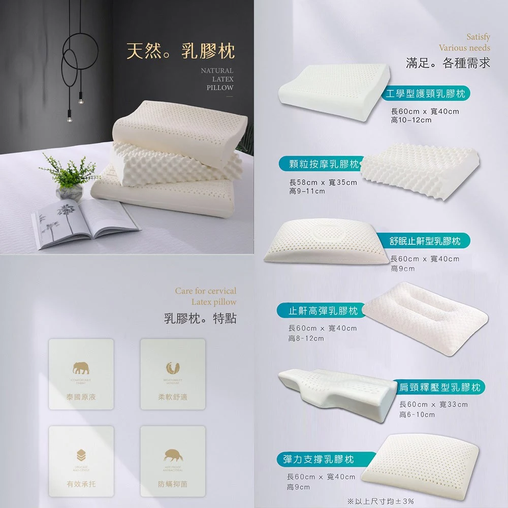 100%天然乳膠枕 1對